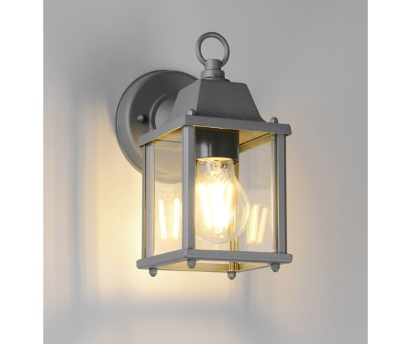 Outdoor wall lamp made of die-cast aluminum and rust-colored, white, and anthracite glass. IP23 protection against external agents and rain.