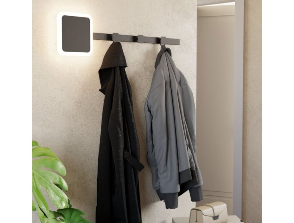 Featuring a black metal body surrounded by a white plastic light frame, the horizontal metal bracket gives the lamp a refined touch, offering enough space for jackets and coats thanks to its three holders. The integrated LEDs provide a pleasantly warm white light, making the lamp the focal point of any entryway. This linear lamp blends perfectly with modern decor styles and can be conveniently turned on and off via a switch integrated into the cable.