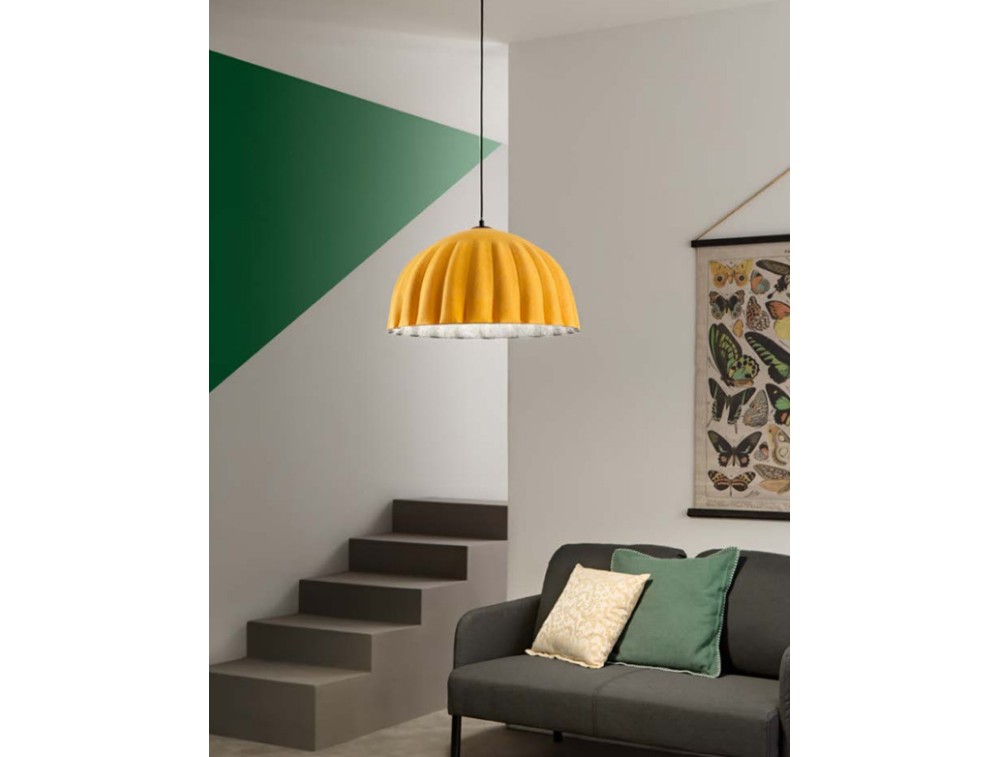 La sospensione Midi richiama l’eleganza della gonna di lunghezza media, con un design che bilancia armoniosamente forma e funzionalità. Realizzata in feltro, è disponibile nelle vivaci tonalità arancione, giallo e grigio, perfette per portare colore e luminosità in qualsiasi ambiente.