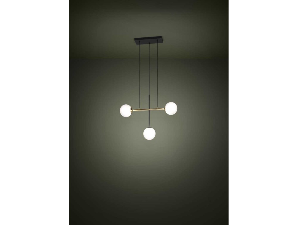 Lampadario ideale per una camera da letto di medie dimensioni, con luce diffusa in ogni angolo grazie alle lampadine presenti nelle sfere di vetro. Garanzia inclusa 2 anni.
