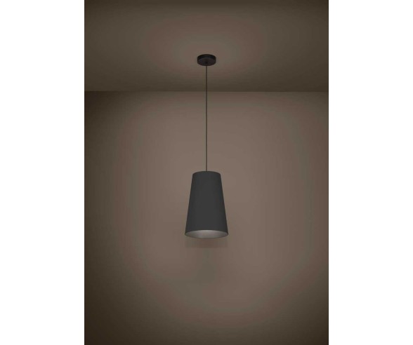 Lampadario ideale per una camera da letto di piccole o medie dimensioni con paralume in tessuto nero o grigio
