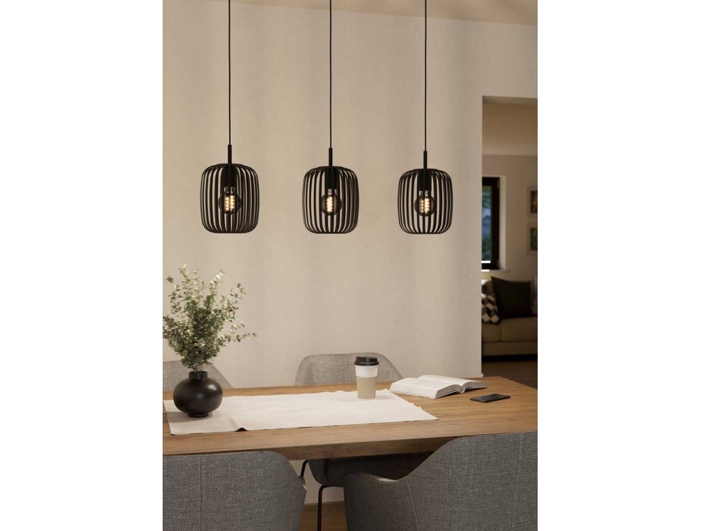 Lampadario in acciaio nero o color sabbia, ideale per illuminare una cucina, un soggiorno o una sala da pranzo.