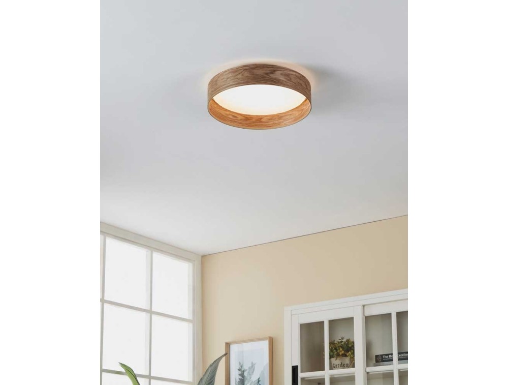 Plafoniera ideale per una camera da letto di media dimensioni, realizzata in acciaio color sabbia e policarbonato bianco da dove fuoriesce la luce led.