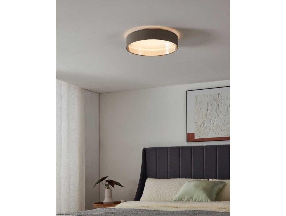 La plafoniera a LED MASERLO 2 è composta da un paralume rotondo in stoffa e un interno colororato. Questa lampada si armonizza in modo eccezionale con arredi moderni.