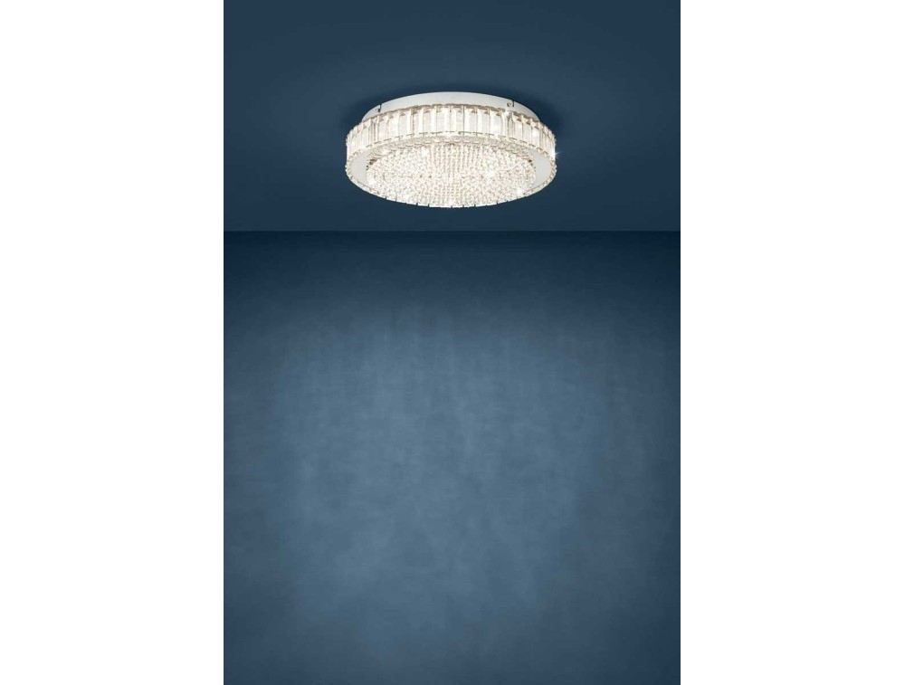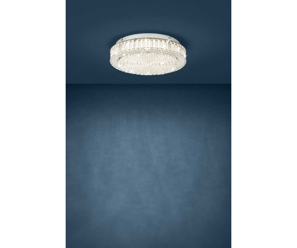 La plafoniera a LED BALPARDA è realizzata in metallo cromato e arricchita da cristalli chiari. Grazie ai pregiati cristalli di vetro che pendono in modo libero nella parte inferiore della lampada, si crea un'immagine straordinariamente scintillante quando questa è accesa.
