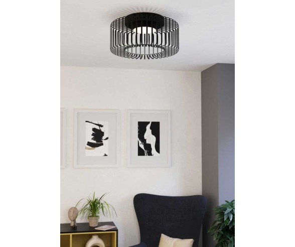 Plafoniera ideale per una cucina o un soggirno di medie dimensioni, realizzata in acciaio nero. Led integrato con controllo tramite app, dimmerabile, Smart Home, Telecomando