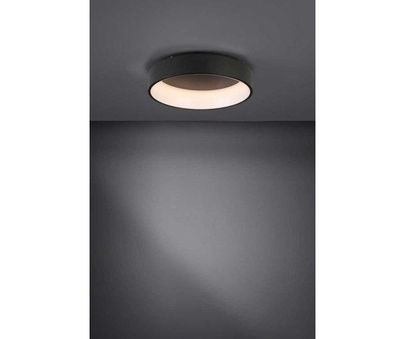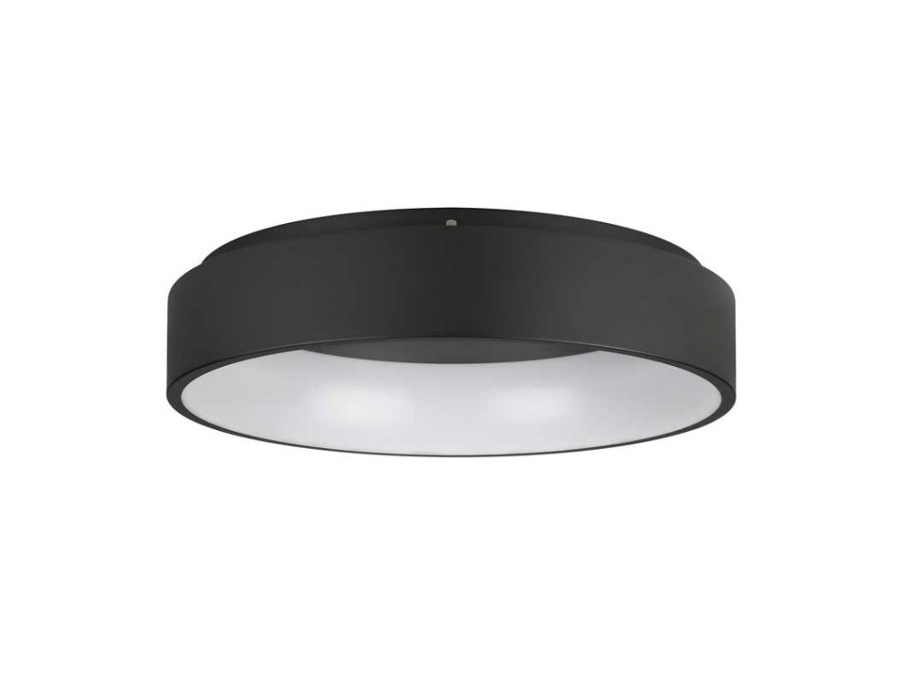 La plafoniera a LED MARGHERA 2 è composta da un corpo di metallo nero a forma di anello con all’interno un profilo LED in plastica bianca.