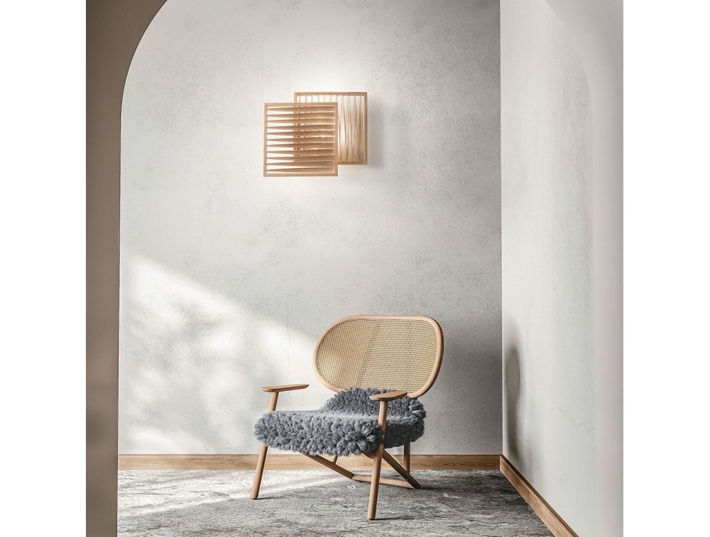 Loft è una lampada da parete dallo stile natural e moderno. Ideale per arredare un ambiente dal mood scandinavo richiamando una natura ecologica ed essenziale. Loft presenta due quadrati sovrapposti, di cui quello nell'estremità superiore può essere orientato, ricreando una composizione dinamica di luci e ombre.