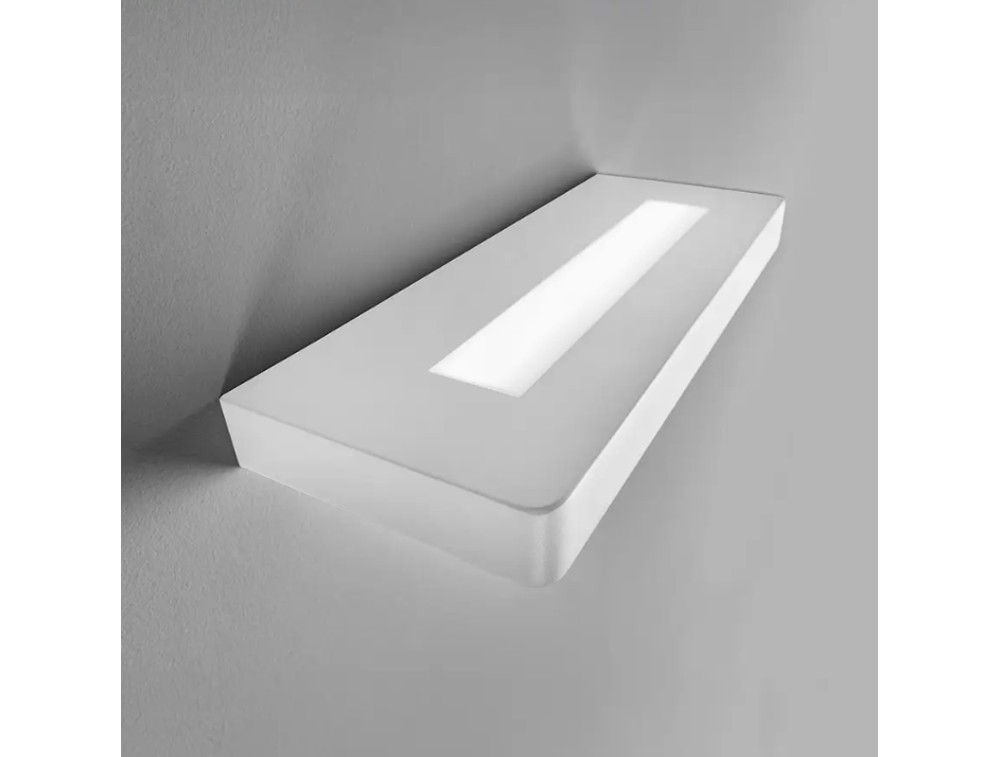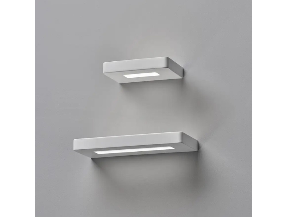 Lampada da parete biemissione con LED integrato, montatura in metallo verniciato e diffusore in metacrilato bianco. Perfetta per arredare e illuminare cucina, salotto, corridoio e camera da letto.