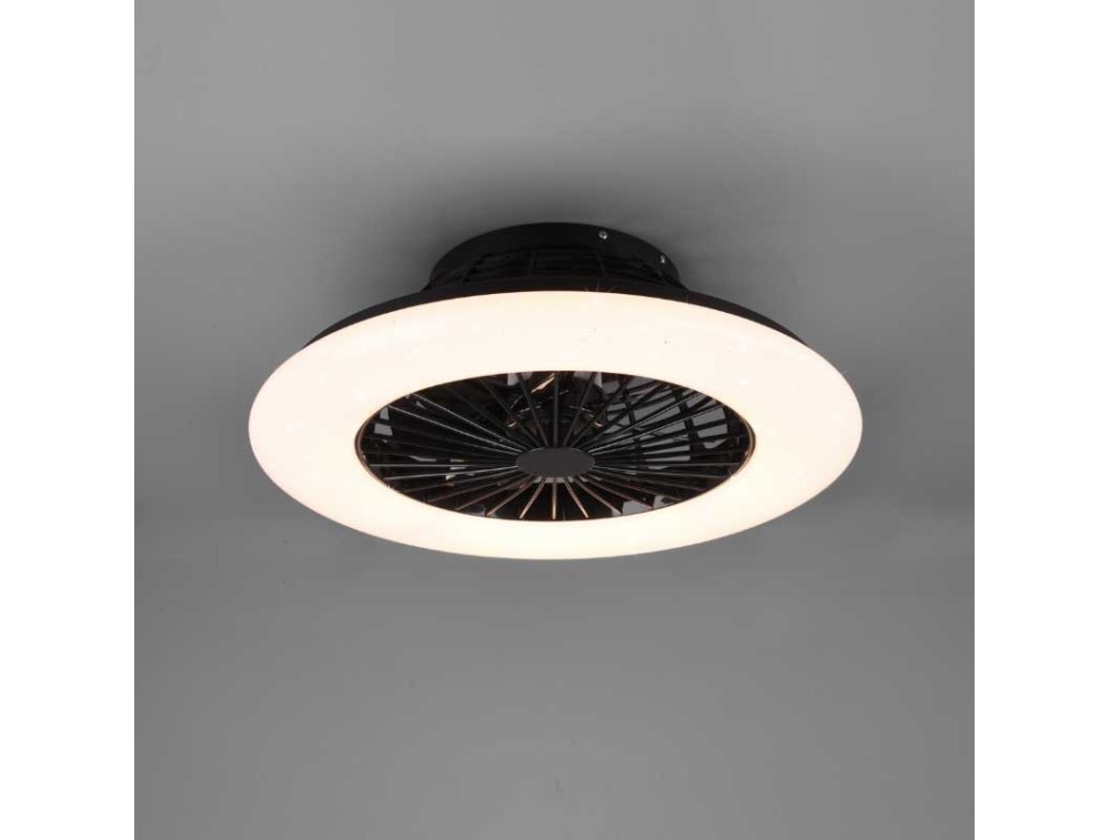 Trio, ventilatore a soffitto con luce in plastica, nero o titanio. 3 livelli di velocità, 3 colori di luce, telecomando incluso.