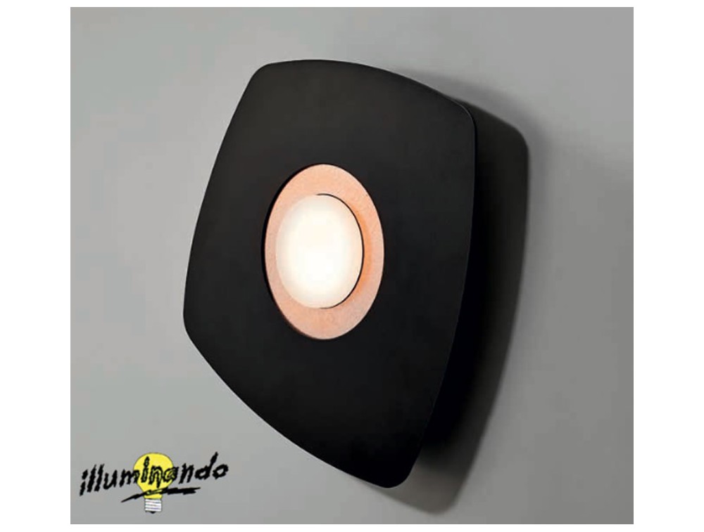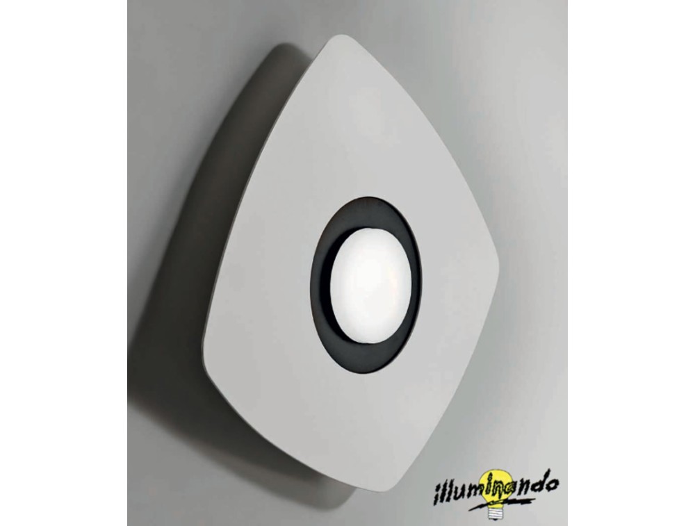 Montatura in metallo verniciato bianco o nero, con anelli nei colori foglia oro, foglia argento, foglia oro, foglia rame e acciaio. Possibile utilizzarla anche come plafoniera.