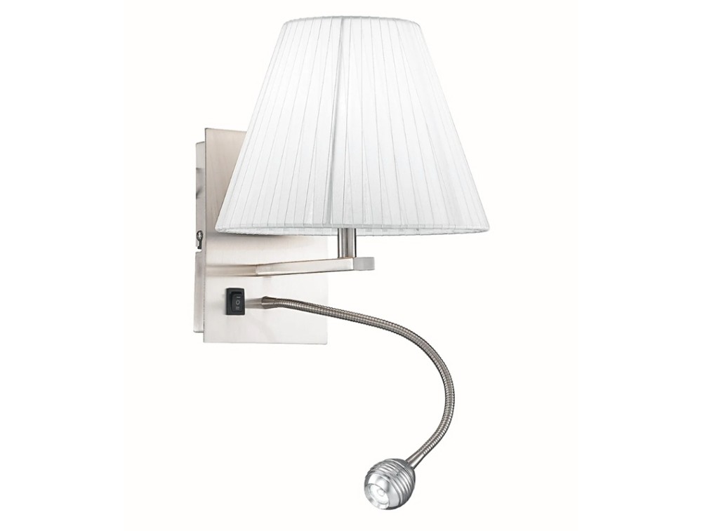 Applique in alluminio con diffusore in tessuto disponibile nelle varianti plissettato bianco, marrone e bianco con luce a LED da lettura regolabile