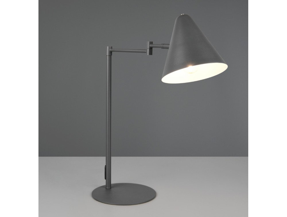 Lampada da tavolo realizzata in metallo color verde, pesca, grigio o antracite. Ideale per cucina, salotto, camera da letto e corridoio. Possibile orientare la lampada in diverse direzioni. Interruttore on/off. Protezione IP20.