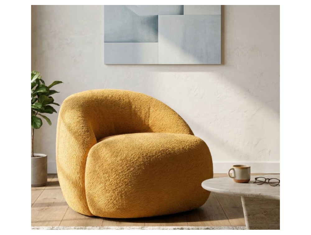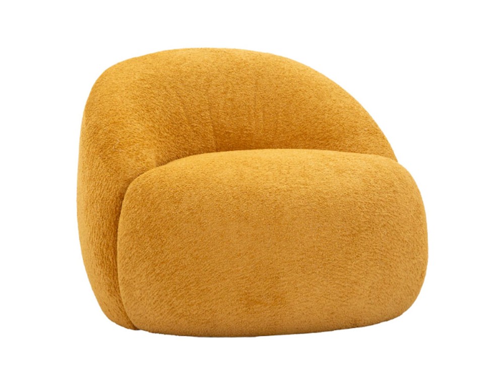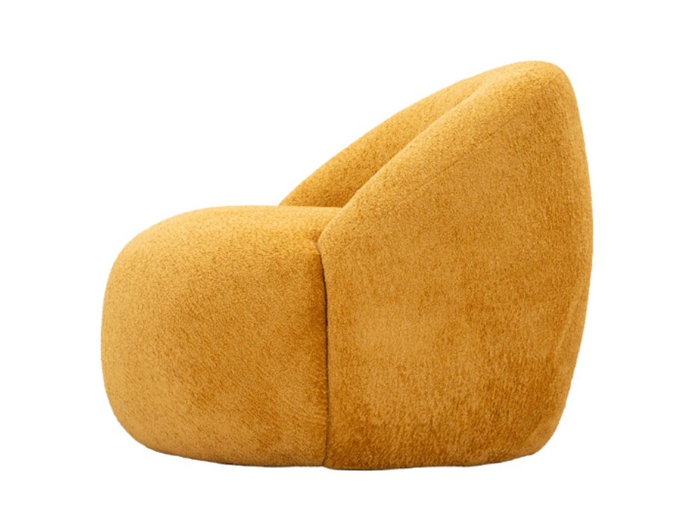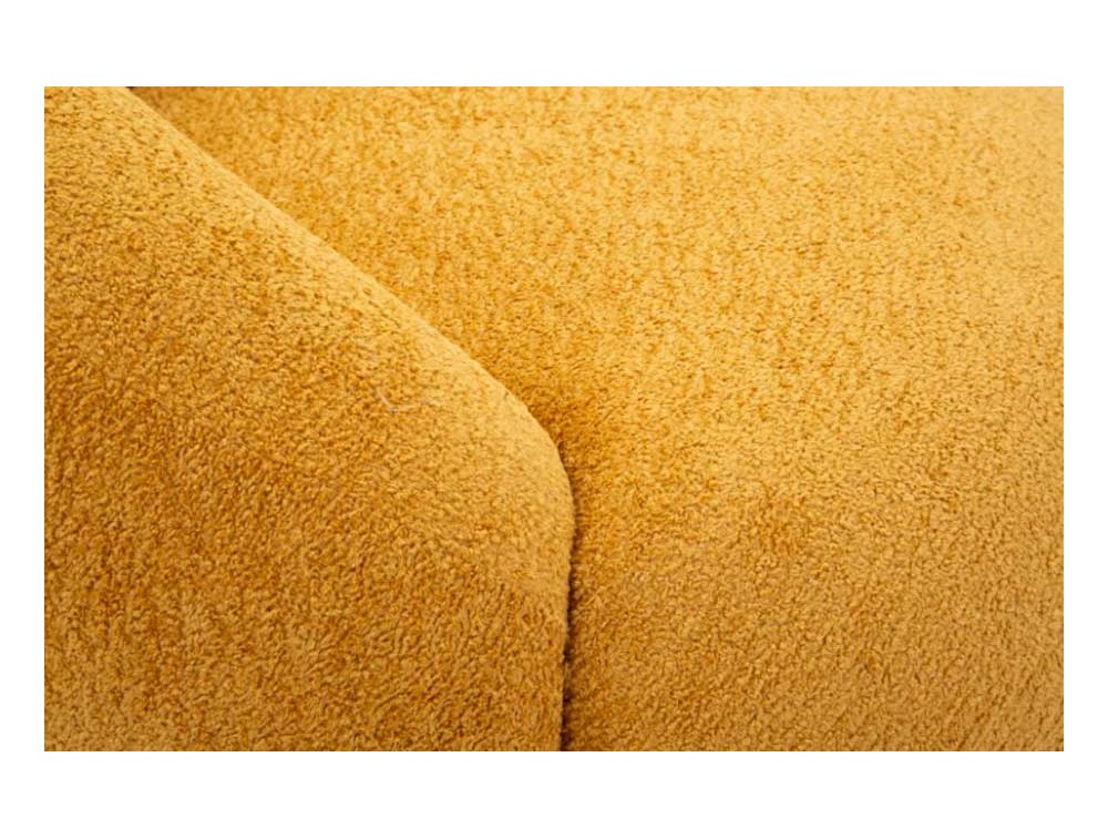 Forme rotonde, tessuto bouclé e morbidezza avvolgente. La poltrona Ginevra è un invito al relax, un elemento di design che combina estetica scandinava e comfort assoluto. Morbidezza e carattere si fondono in un design accogliente e contemporaneo. La poltrona Ginevra Senape aggiunge calore e vitalità all’ambiente, con una texture bouclé che invita al relax. Realizzata in compensato, poliestere e spugna.
