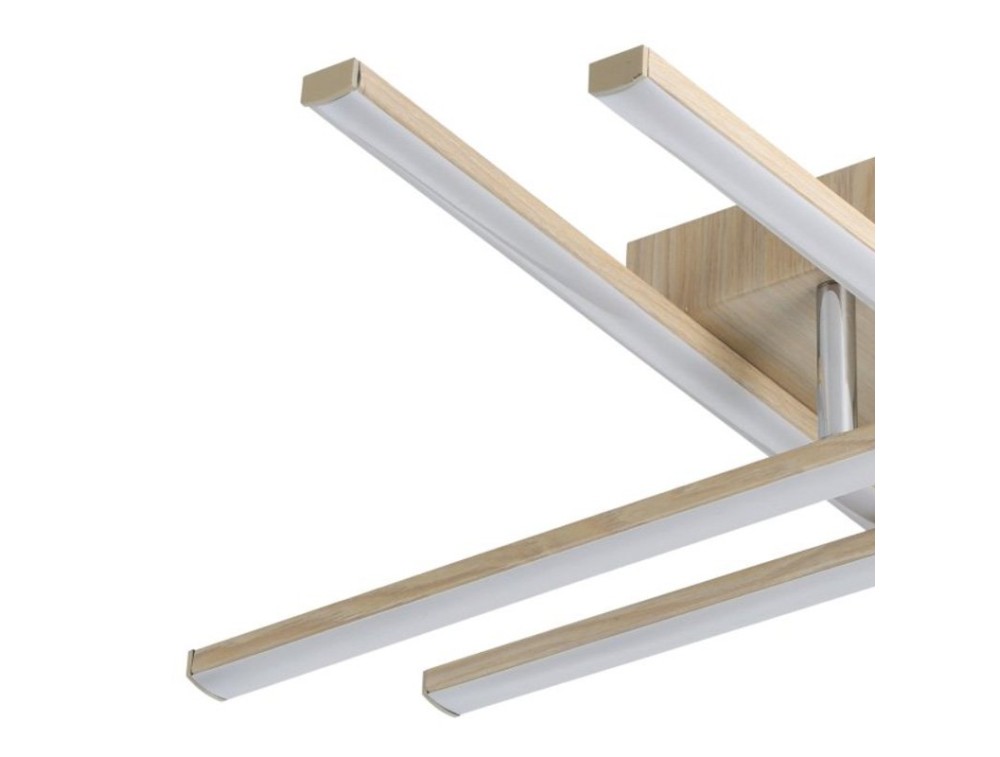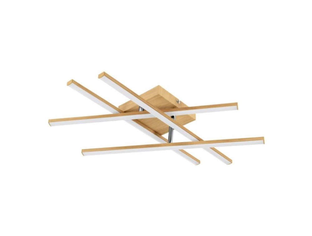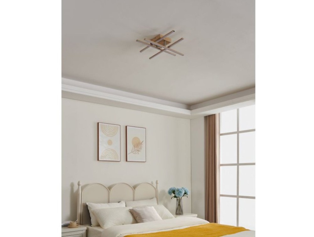 Plafoniera per cucina in alluminio con diffusore in policarbonato e finiture marrone chiaro. Aggiunge un tocco di raffinatezza senza appesantire l'ambiente. Un vero e proprio elemento di design che cattura lo sguardo. Caratterizzata da una struttura con 4 bracci regolabili, la lampada presenta una serie di elementi sottili e luminosi