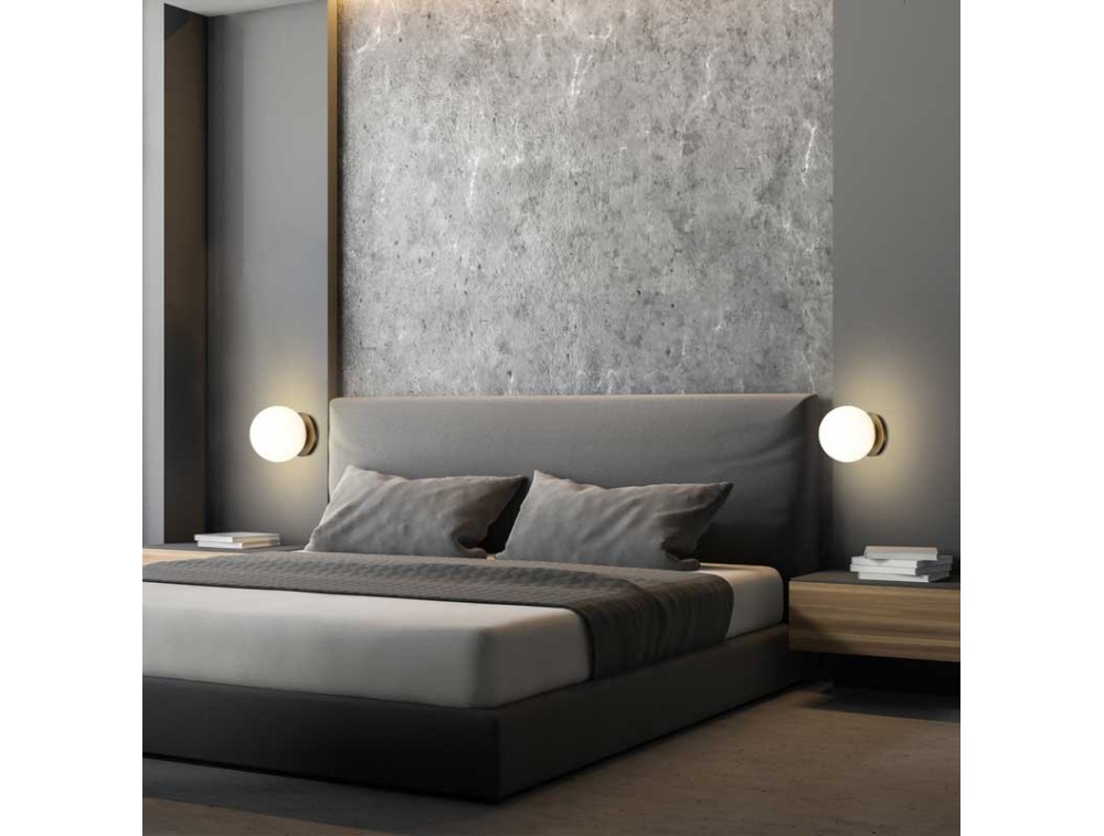 Lampada da parete Parma firmata ACB, moderna con struttura in metallo diffusore rotondo in vetro bianco a forma di sfera, perfetta per arredare e illuminare cucina, corridoio, soggiorno e camera da letto illuminando con classe l'ambiente. La soluzione per chi cerca un elemento unico nel suo genere.