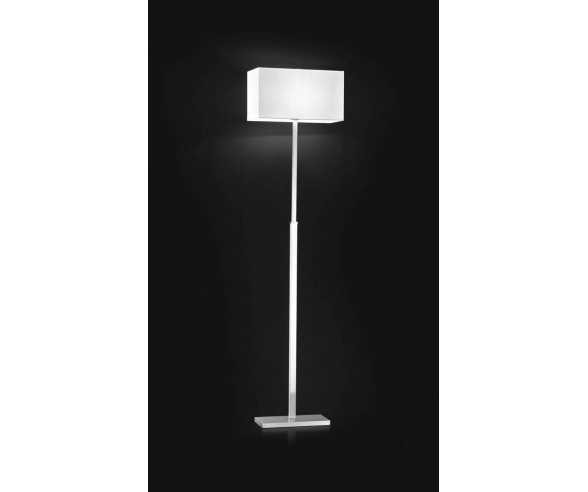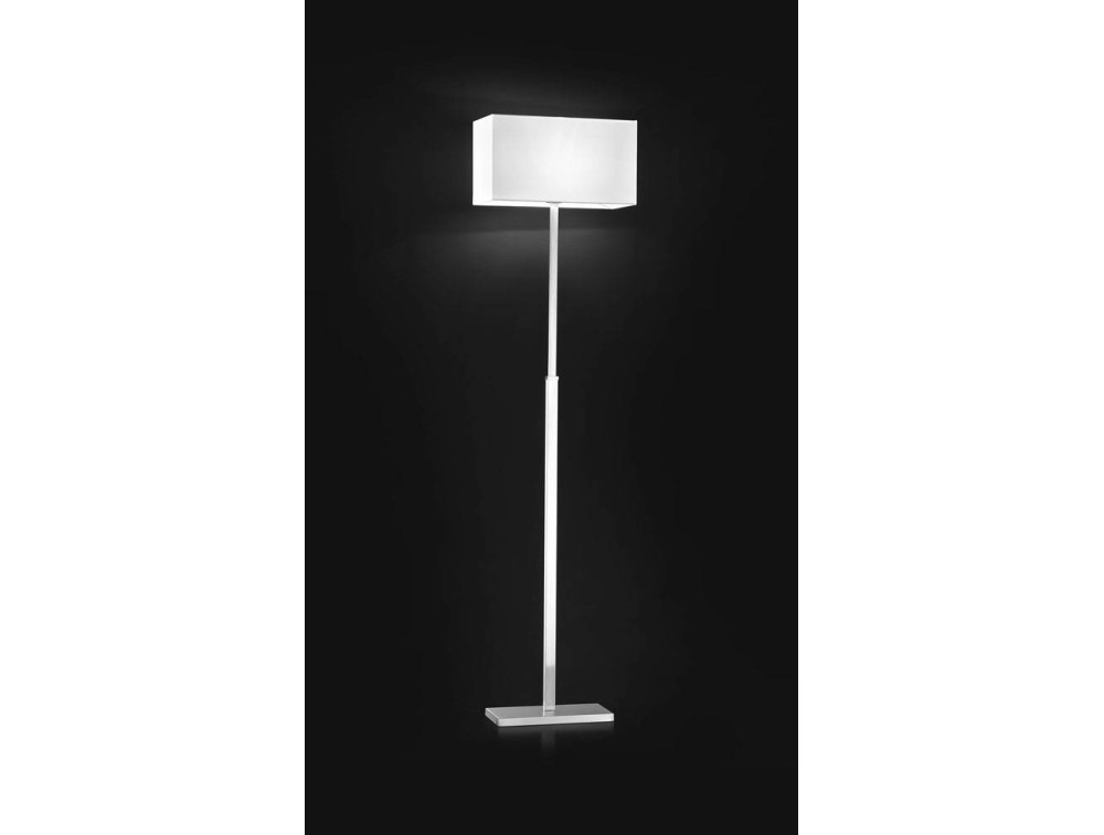 Collezione di lampade realizzate con montatura in metallo in finitura cromo spazzolato e paralume in tessuto e pvc. Lampada dalla particolare forma rettangolare dei paralumi, che rende questa serie di articoli moderna ed originale. Lampada da terra ideale per ambienti moderni e lineari.