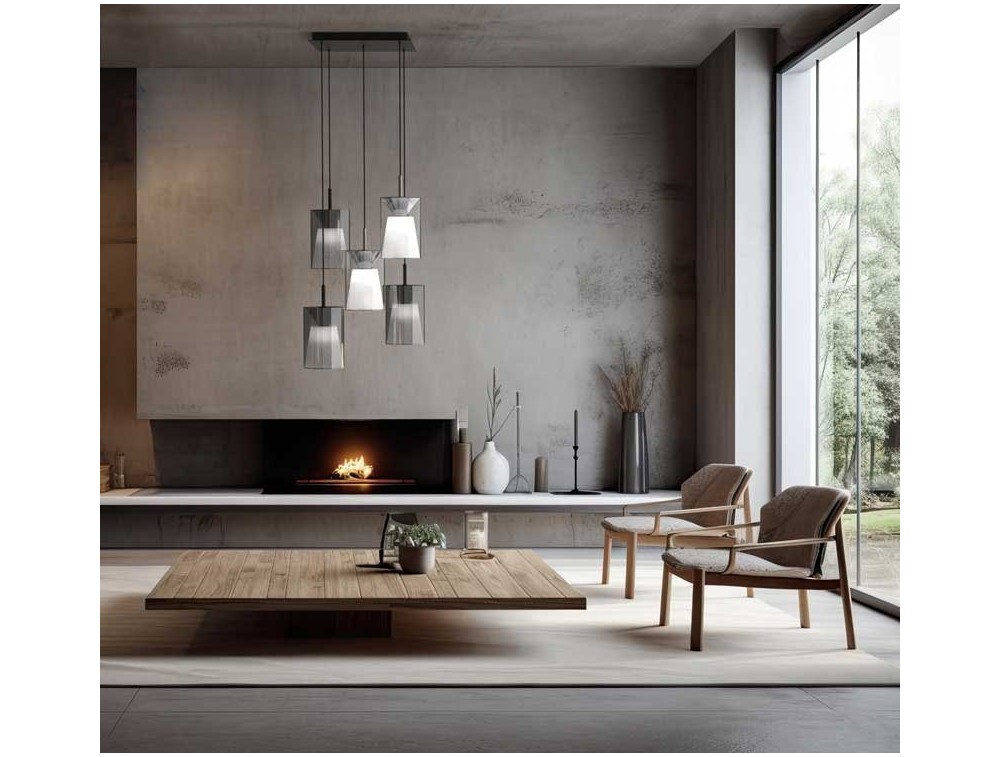 Iconic è una lampada a sospensione contraddistinta da un diffusore in vetro a forma di cilindro con un cono in metallo interno riflettente. Su richiesta è possibile creare composizioni di più luci