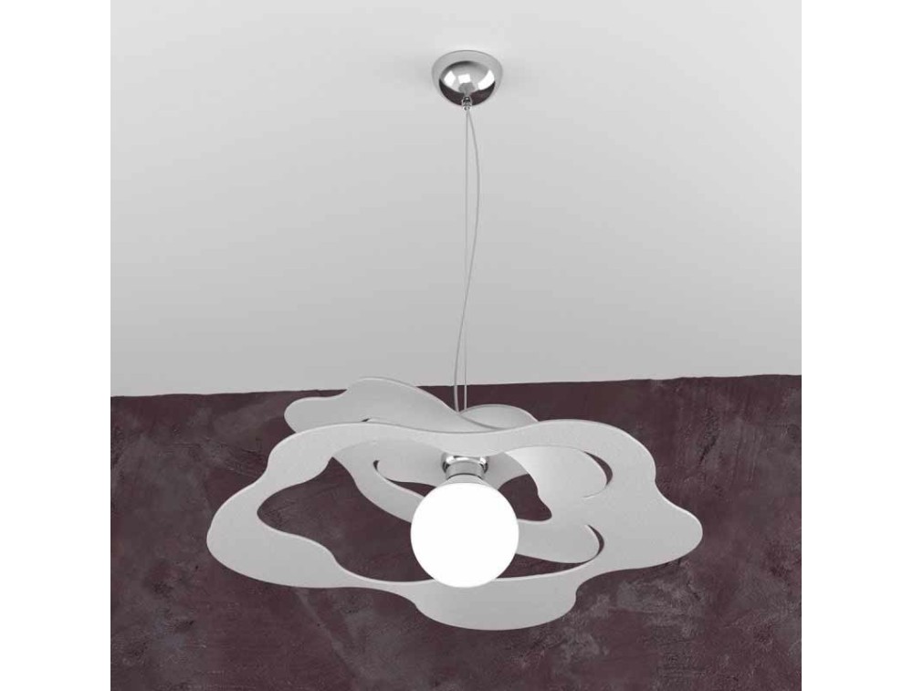 Top light ha creato questa sospensione moderna dal design sinuoso e originale. Una simpatica calata che può prendere le sembianze di un fiore e creare un piacevole movimento nella stanza. Il diffusore in metallo permette di avere giochi di luce e ombre nella stanza. Un prodotto Made in Italy.