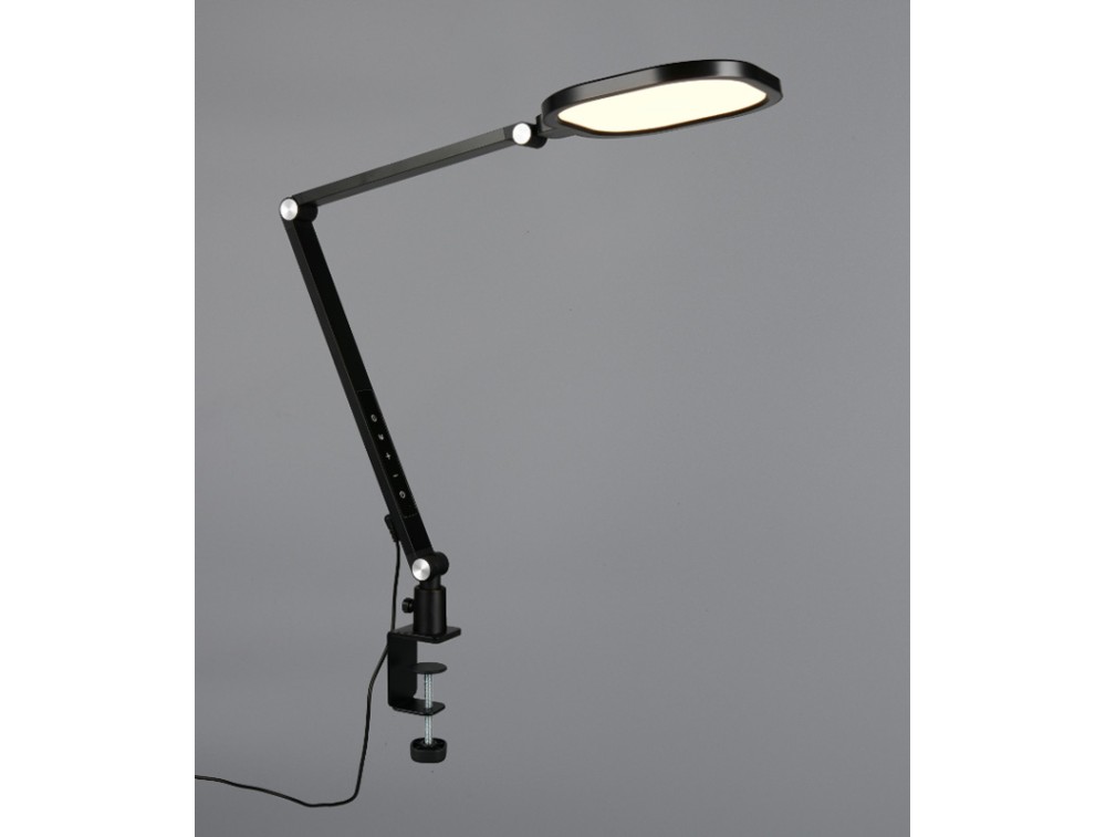 Lampada da tavolo realizzata in metallo con led integrato. Dotata di fissaggio a morsetto, cosi sarà possibile fissarla a diverse superfici senza dover forare o avvitare. Sensore touch per accendere e spegnere la lampada con sistema di memoria integrato. Inoltre grazie alla funzione Timer si può accendere e spegnere automaticamente.