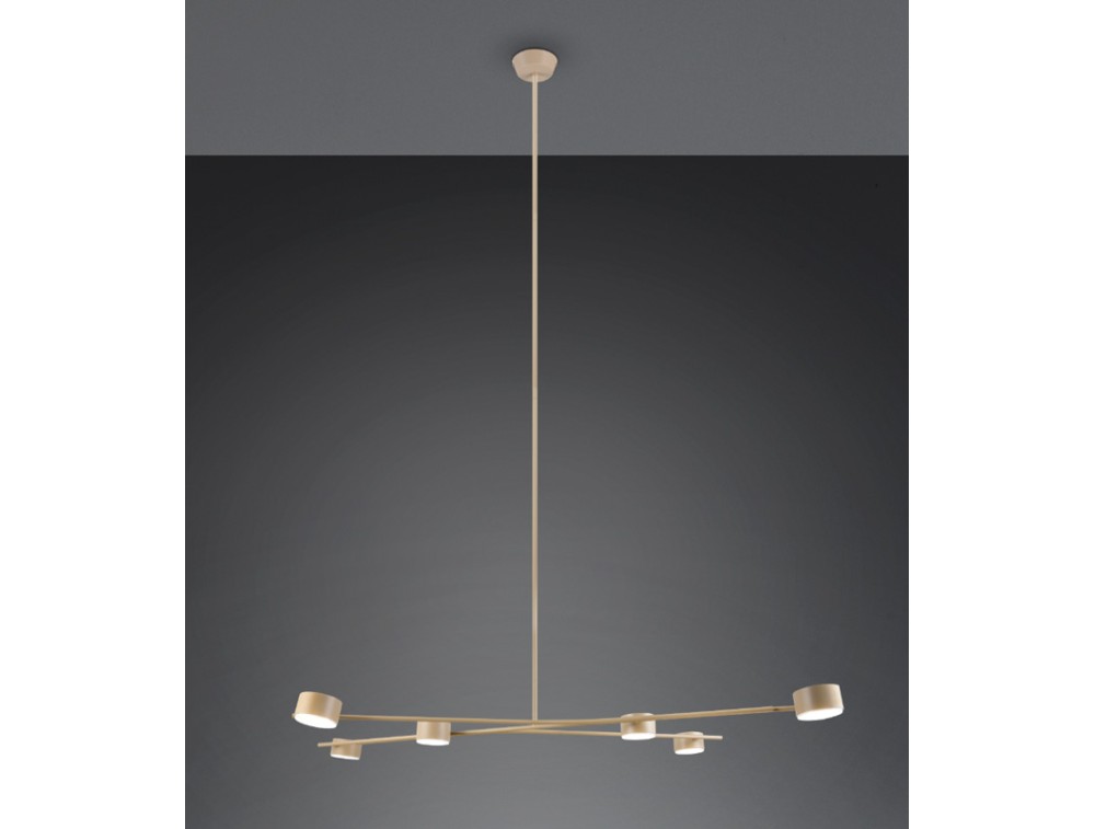 Sospensione realizzata in metallo, ideale per illuminare e arredare cucina, salotto e camera da letto. Le lampade possono essere orientate in diverse direzioni. Regolabile in altezza.