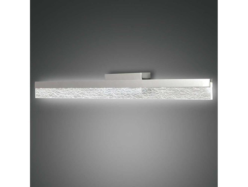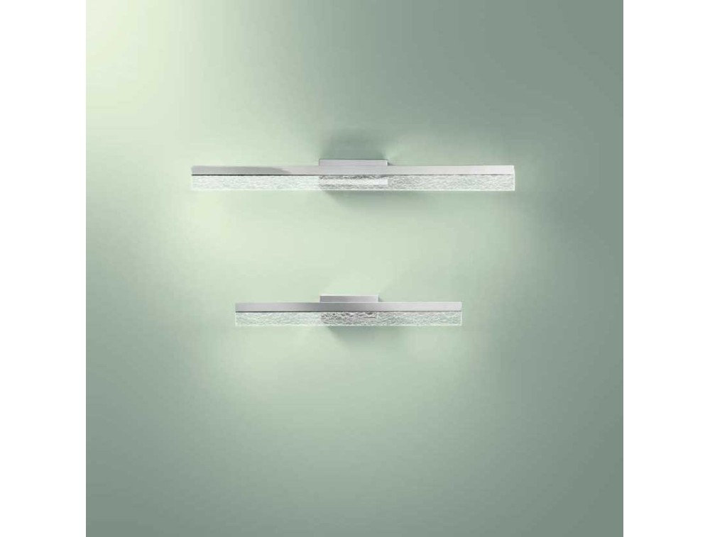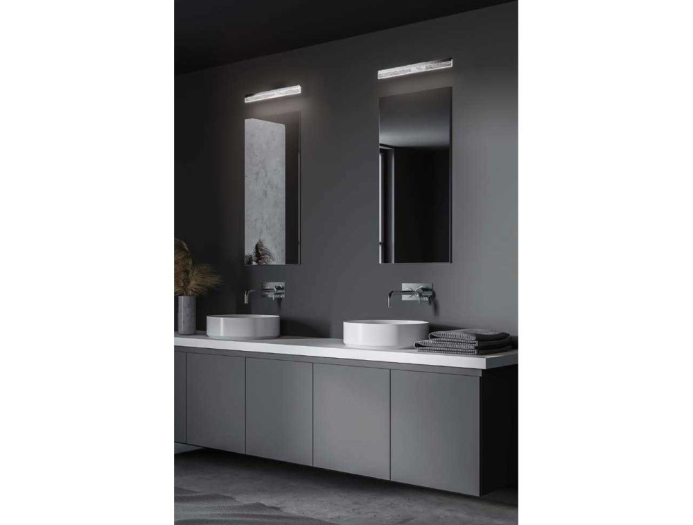 Applique moderna adatta per l’illuminazione dello specchio del bagno. È realizzata in metallo con diffusore in metacrilato, caratterizzata da una forma rettangolare. Dispone di sorgente a LED ad alta efficienza con bassi consumi di energia.