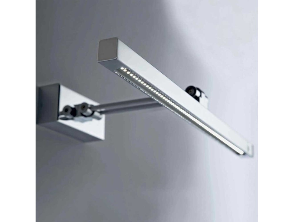Lampada a parete da specchio con montatura in metallo verniciato bianco e diffusore in plexiglass.