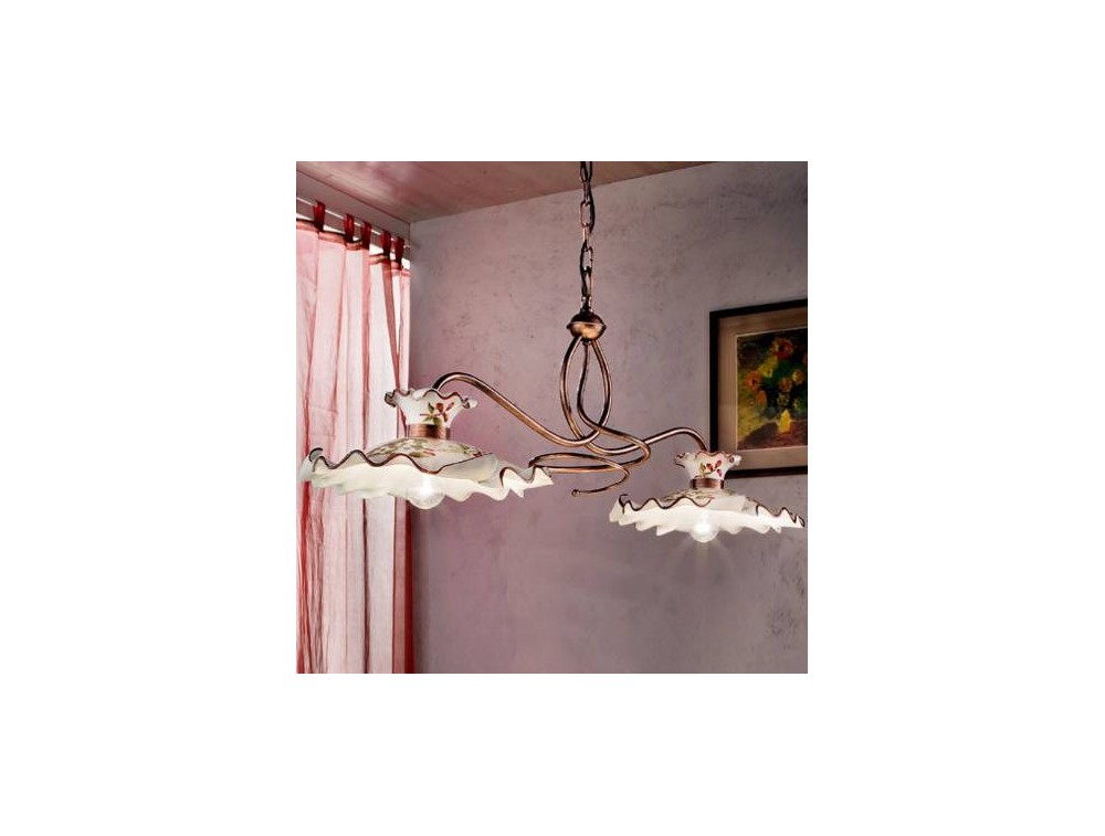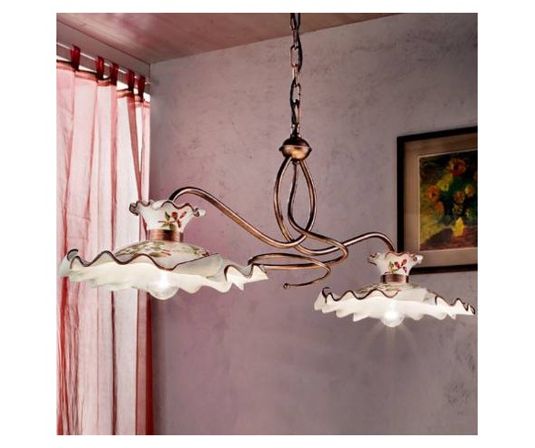 Bilancere dal design rustico realizzato in ceramica lucida, decorata a mano con motivi floreali e struttura in ottone. Lampada dal diffusore dai contorni ondulati e frastagliati, perfetta per valorizzare un ambiente rustico, struttura in ottone. Le lampade ferroluce offrono una vasta scelta nei decori, i quali sono completamente realizzati a mano, dettaglio grazie al quale è possibile richiederne la personalizzazione.