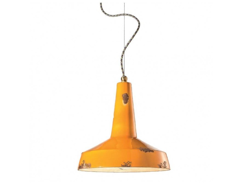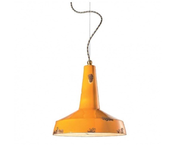 Lampade e lampadari Ferroluce, sospensione realizzata con struttura in metallo e paralume in ceramica smaltata in vari colori.