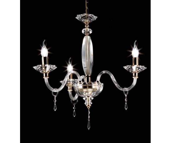 Lampadario classico realizzato con struttura in cristallo e vetro trasparente, finiture color oro. Lampadario in cristallo impreziosito a sua volta da dettagli dello stesso materiale e dalle finiture in oro che donano un tocco di eleganza alla lampada. Ideale in camere da pranzo, da letto e in zone living dello stesso stile d'arredamento.