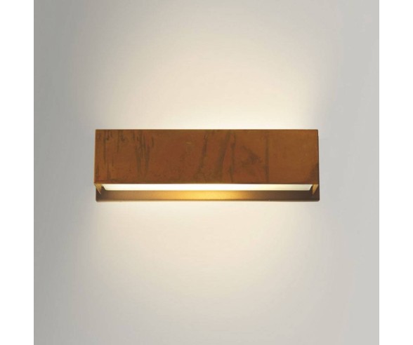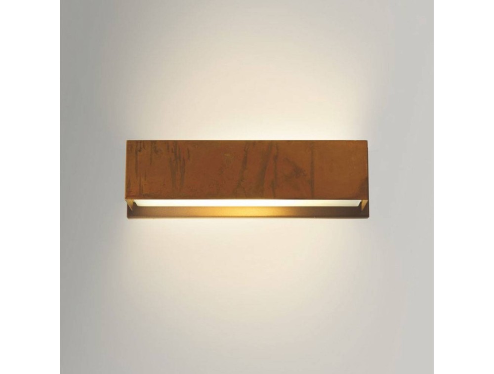 Gibas, applique realizzato con struttura in ottone ossidato e sottobase in acciaio verniciato a polveri epossidiche.  Diffusore in vetro temperato per un’emissione luminosa diretta e indiretta.