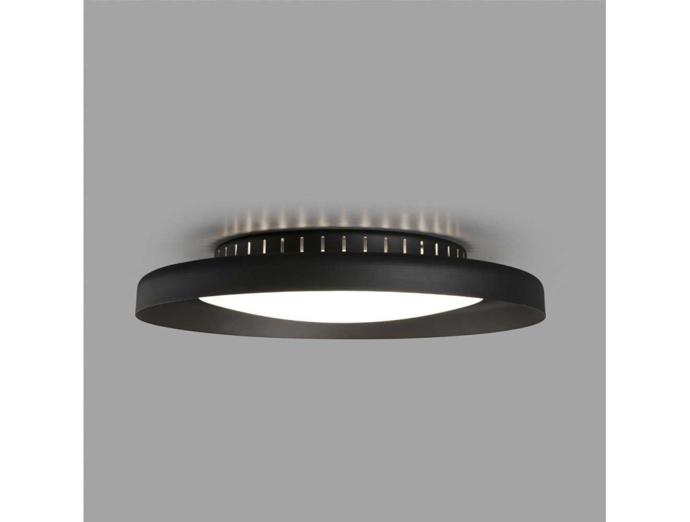 Lampada da soffitto LED realizzata con struttura in metallo bianco o nero e diffusore in policarbonato.