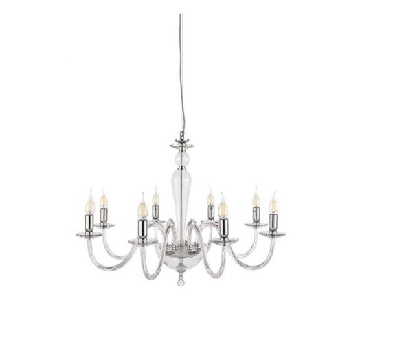 Il lampadario della collezione Paganini di Ciciriello è realizzato in vetro lavorato a mano e presenta dei dettagli in cristallo ottico con finiture in metallo. I cavetti in acciaio di cui dispone la lampada sono regolabili in altezza. E' disponibile in diversi colori tra cui: bianco, blu, ambra, fumè, rubino, borgogna, cromo e oro. Il lampadario illumina e allo stesso tempo arreda ambienti di ogni tipo.