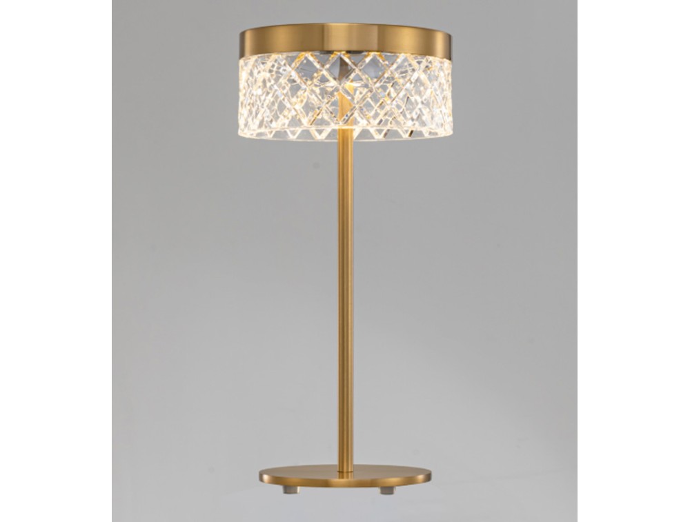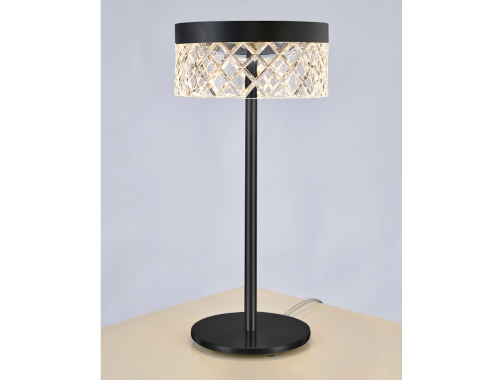 Lampada da tavolo con led integrato realizzata con diffusori in acrilico con montatura in metallo color oro o nero e cromo. Perfetta per arredare e illuminare cucina, salotto, corridoio e camera da letto.