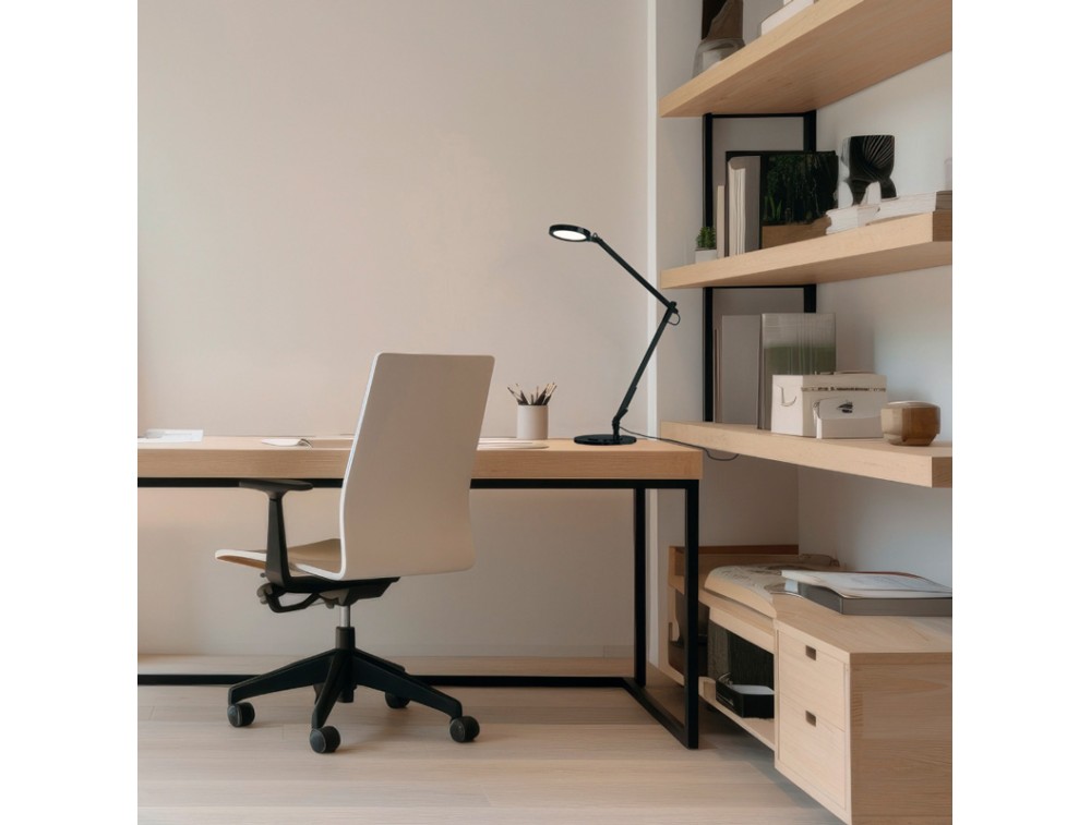 Il colore nero totale e la finitura opaca la rendono un oggetto sobrio che si integra perfettamente in ambienti moderni, scandinavi o industriali. Come vedi nella foto, spicca magnificamente su una scrivania bianca, richiamando altri piccoli dettagli neri (come la matita o il bordo della tazza) e creando un look professionale e ordinato. La spedizione è gratuita e la garanzia di 2 anni.