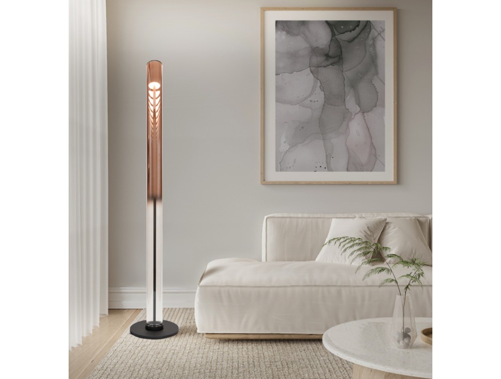 Piantana realizzata in alluminio con base colore antracite e diffusore in vetro disponibile in diversi colori tra cui oro, oro rosa e cromo. Dotata di led 3000K dimmerabile. Si colloca tra l'Industrial Chic e il Moderno Contemporaneo. La combinazione del vetro e il metallo scuro è un classico intramontabile che qui viene riletto in chiave futuristica. Posizionata tra un divano e una parete, la piantana funge da punto luce d'atmosfera. Se hai un angolo un po' anonimo o un soffitto che sembra basso, questa lampada è un trucco architettonico perfetto, dando un senso di maggiore altezza alla stanza. In un ingresso minimalista, questa piantana funge da scultura luminosa.
