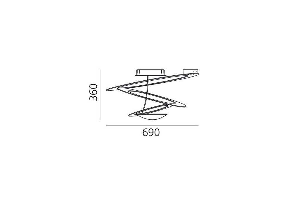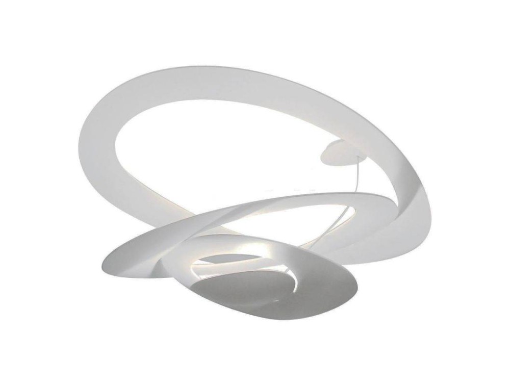 Plafoniera di design realizzata con struttura in alluminio verniciato bianco. Dischi leggeri di alluminio si sovrappongono creando morbide forme che, a cascata, fluttuano verso il basso regalando magici effetti di luce e design. Lampada che garantisce un ottima resa di luce illuminando indirettamente tutto l'ambiente.