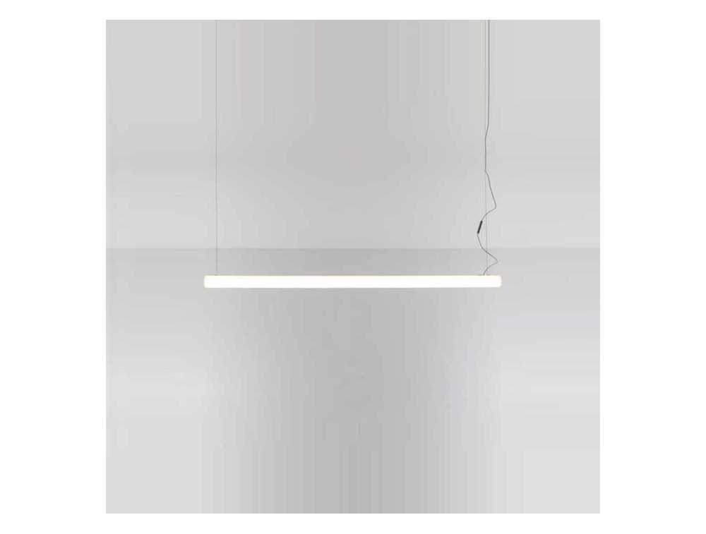 Alphabet of light è un linguaggio di luce per comunicare in libertà, è un principio elementare che genera un sistema aperto. A partire da un abaco di essenziali elementi geometrici BIG disegna un nuovo font che si traduce in luce, un alfabeto con cui scrivere ed esprimere pensieri, uno strumento per modellare gli spazi. Alphabet of light permette di disegnare non solo con parole ma anche con segni grafici la luce nello spazio. Due elementi lineari di diverse lunghezze e due circolari si affiancano al sistema di lettere, numeri e simboli. L’elemento circolare, disponibile in due diametri, si scompone in moduli che consentono di unire gli elementi lineari secondo differenti angoli disegnando geometrie di volta in volta differenti. Questi semplici moduli base, dalle precise proporzioni geometriche, possono essere combinati tra loro costruendo infinite strutture di luce, essenziali o più complesse, lineari o curvilinee, definendo sospensioni che entrano nello spazio seguendo l’architettura o la funzionalità degli spazi. L’idea di BIG si combina alla competenza optoelettronica di Artemide per definire un principio costruttivo innovativo e restituire una luce continua e confortevole. È una presenza minima che racchiude un’altissima innovazione optoelettronica e meccanica brevettata.