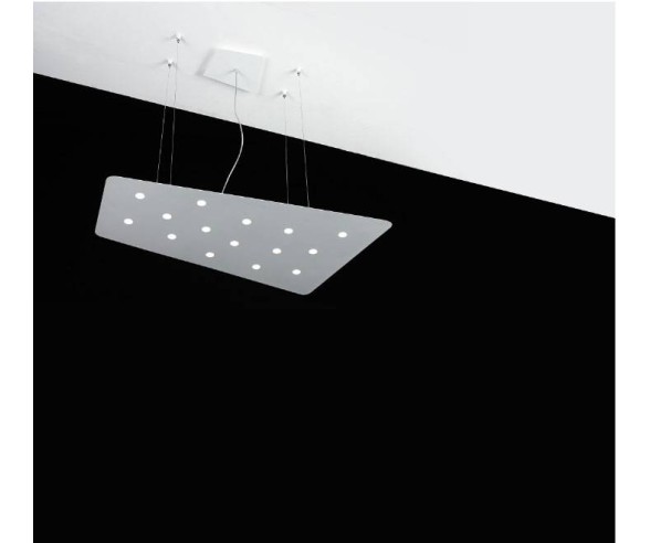 Cattaneo illuminazione, sospensione dal design moderno formata da una lastra di metallo sottilissimo.