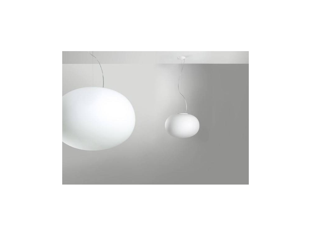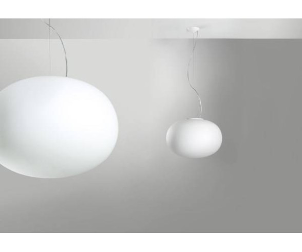 Sospensione realizzata con struttura in metallo disponibile nelle finiture bianco o cromo, il vetro soffiato bianco latte è il punto dal quale scaturisce la luce che pervade tutto l’ambiente. Lampada dal design moderno ed essenziale, la forma tondeggiante del suo diffusore è esaltata dalla finitura chiara del vetro. Versatile, consigliata in ambienti di design moderno.