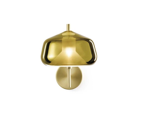 X-Ray applique in vetro borosilicato color miele, trasparente e oro con montatura in oro spazzolato. Si posiziona con eleganza sulle pareti della casa o di un hotel portando una luce innovativa e di stile.