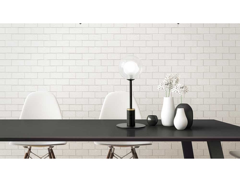 Il diffusore di forma sferica dal diametro Ø12 cm bianca è in vetro soffiato, mentre la montatura in metallo verniciata di nero e particolare in oro.