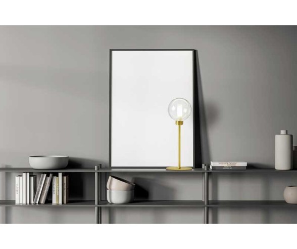 Lampada da comodino per la collezione Dom di Miloox, dal design minimale perfetta per illuminare ed arredare i comodini di una camera da letto in stile moderno o contemporaneo. Realizzata in metallo ottone oro spazzolato dove è posta una sfera di vetro borosilicato trasparente con cilindro interno scherma lampadina in vetro satinato.