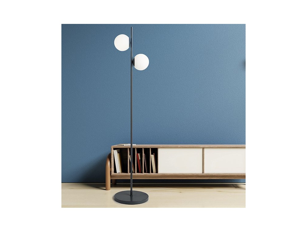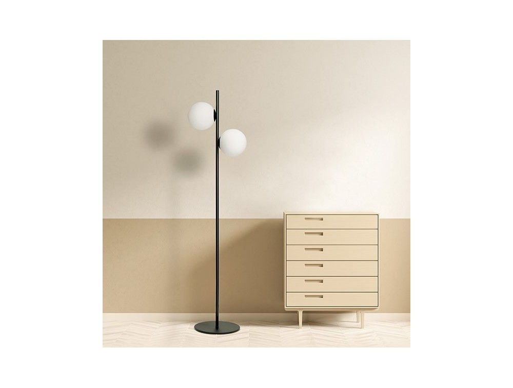 Piantana lampada da terra della serie Jugen firmata dal brand italiano Miloox, qui come dal nome appunto la ritroviamo con montatura in metallo e doppia sfera in vetro, perfetta per illuminare e contemporaneamente arredare diversi ambienti di casa, come il salotto o soggiorno ma anche l'ufficio. Questa piantana è caratterizzata da una linea semplice ma allo stesso tempo ricercata e molto luminosa, infatti le due sfere in vetro in bianco lasciano trapassare la luce a 360° in tutto l'ambiente.