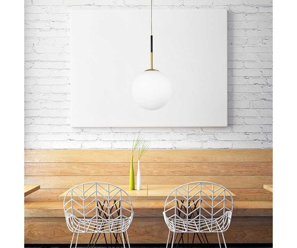 Lampadario per camera da letto, cucina o soggiorno, firmato dal brand italiano Miloox per la serie Jugen di. Si tratta di un lampadario con diffusore di forma sferica realizzata in vetro soffiato dal diametro di Ø30cm e composto da una struttura con montatura in metallo verniciato. Questa lampada sospesa è realizzato interamente in vetro per offrire un'eccezionale luminosità a 360° su tutto l'ambiente, grazie al portalampadina con attacco E27 potrete inserire lampadine Led per un maggiore risparmio energetico e durata nel tempo.
