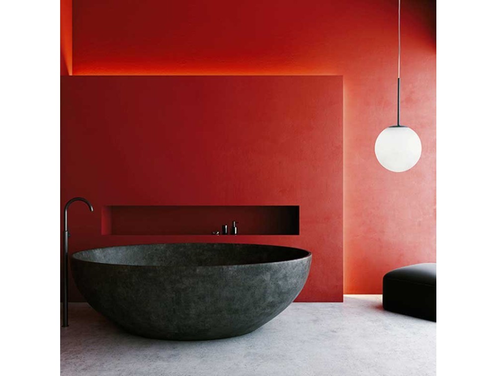 Si tratta di un lampadario con diffusore di forma sferica realizzata in vetro soffiato dal diametro di Ø30cm e composto da una struttura con montatura in metallo verniciato: nero ed ottone, tutto nero, ottanio.