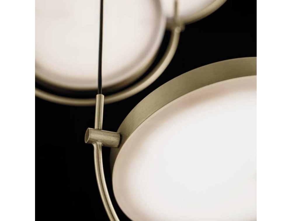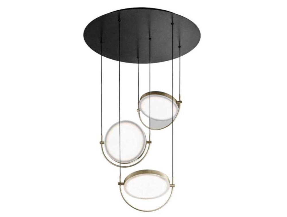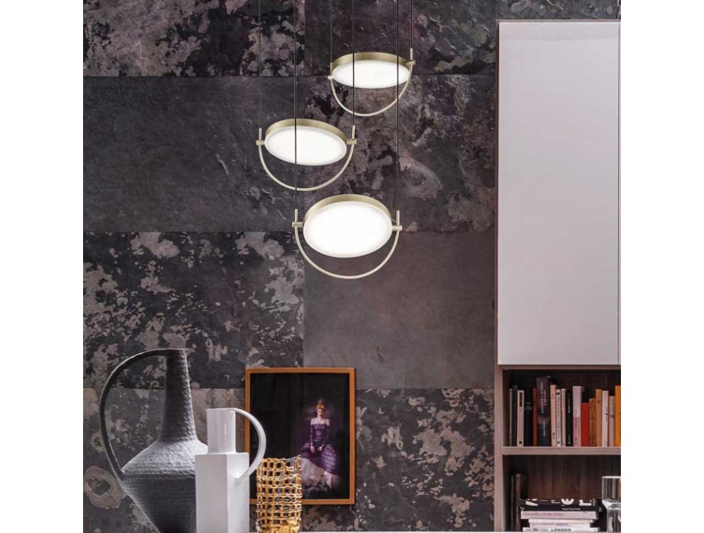 Sospensione led Giotto, firmata dal brand italiano Sil Lux, con struttura in metallo e acrilico ed un aspetto elegante, perfetto per cucina, salotto e camera da letto, con finiture color nero e oro spazzolato. I 3 diffusori sono inclinabili a piacere per un'illuminazione personalizzata.