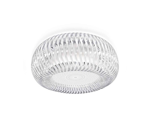 Il design di Kalatos è di chiara ispirazione all’arte dell’intreccio, espressione dell’artigianato artistico tradizionale che l’uomo porta con sé da quando, nella preistoria, dava vita a cesti e canestri intrecciando fibre vegetali. Rivisitata in chiave high-tech, con l’utilizzo dei tecnopolimeri di Slamp, la collezione si compone di una versione a sospensione e una plafoniera ed entrambe realizzate in due finiture/colori: nero opaco con interno dorato e bianco con dettagli in Lentiflex trasparente.