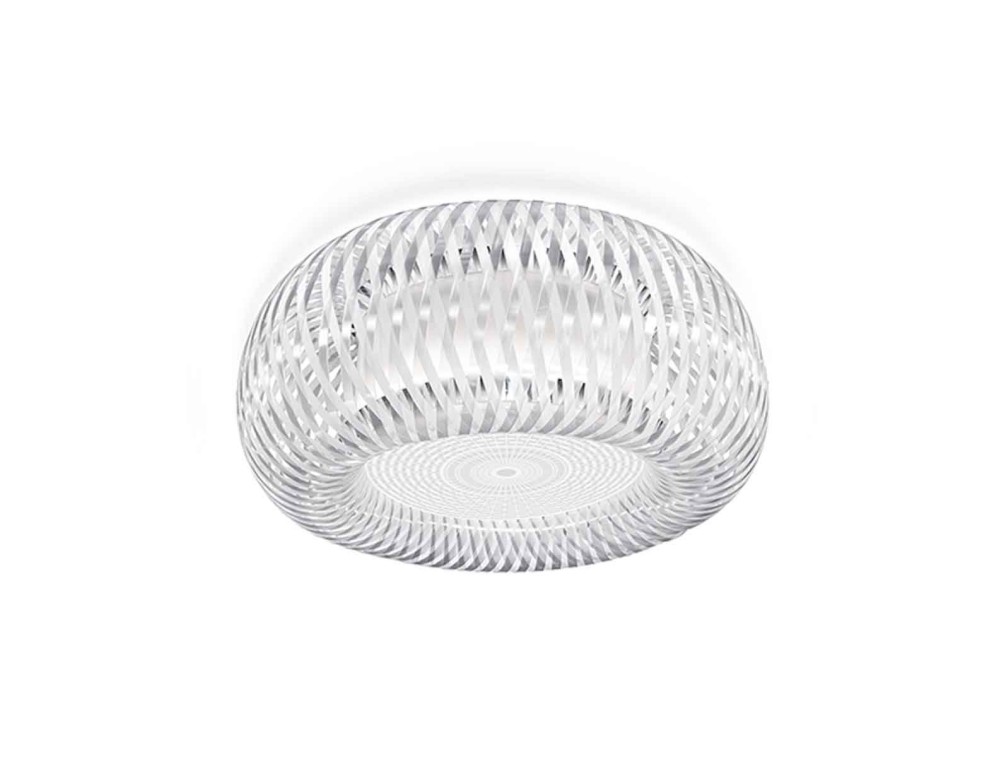 Lampada a soffitto Kalatos rivisitata in chiave high-tech, con l’utilizzo dei tecnopolimeri di Slamp, la collezione si compone in due finiture/colori: nero opaco con interno dorato e bianco con dettagli in Lentiflex trasparente.