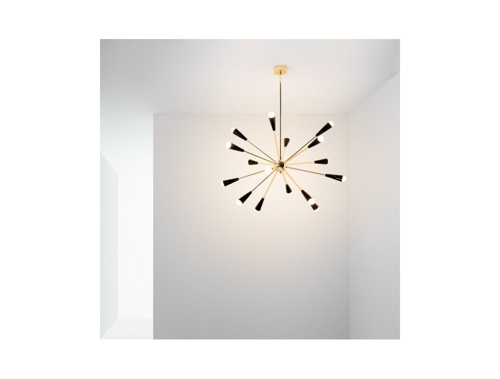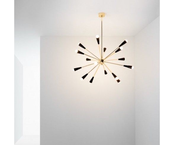 Sputnik è un’esplosione di luce, un fuoco d’artificio che illuminerà uniformemente qualsiasi stanza in cui lo andrete ad inserire. Lampadario composto da 16 braccia realizzate in ottone con doratura galvanica e finali in metallo disponibili in nero, avorio o nella variante multicolor per ambienti giovani e vivaci.